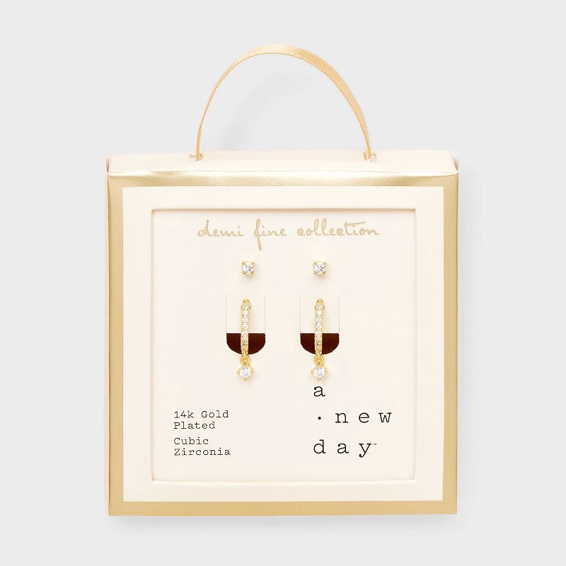 Keep yourself ready for all occasions with the 2-Piece 14K Gold Plated CZ Studs Hoop Earring Set from A New Day™. This set of two pairs of earrings includes one stud pair and one hoop pair, both with …