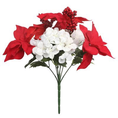 15" Red Poinsettia & White Hydrangea Deluxe Bush By Ashland