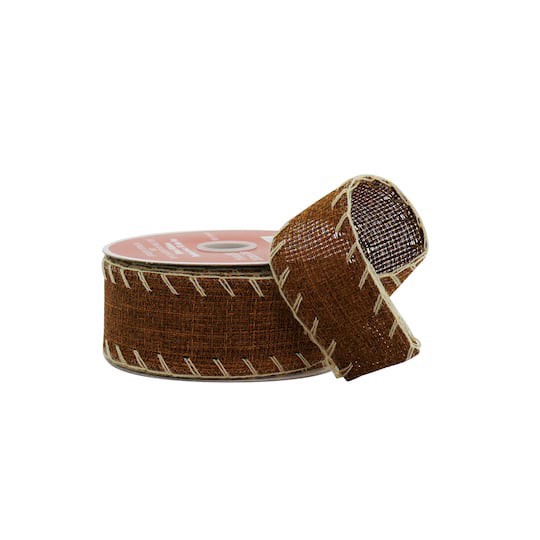 1.5" X 25ft. Brown Whip Stitched Wired Ribbon By Celebrate It