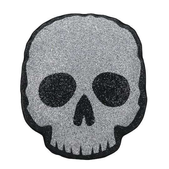 15.5" Glittery Silver Skull Accent Pillow By Ashland