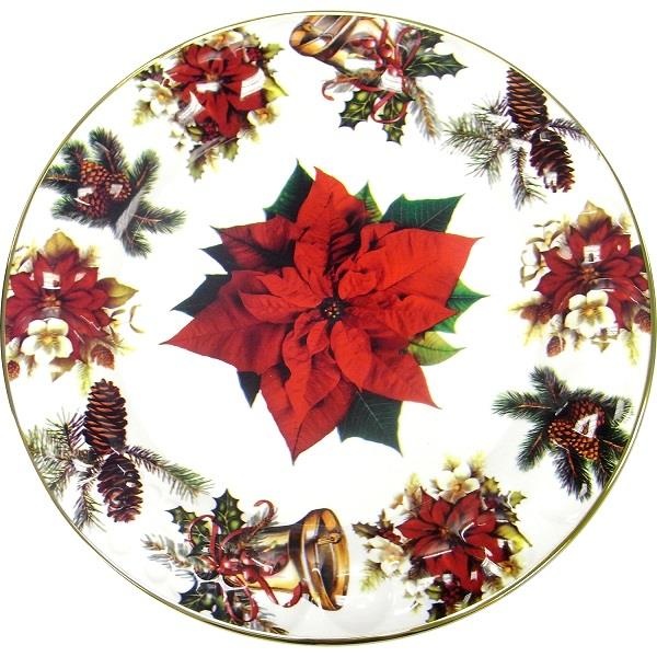 slide 1 of 1, 15in Round Tray Poinsetia, 15 in