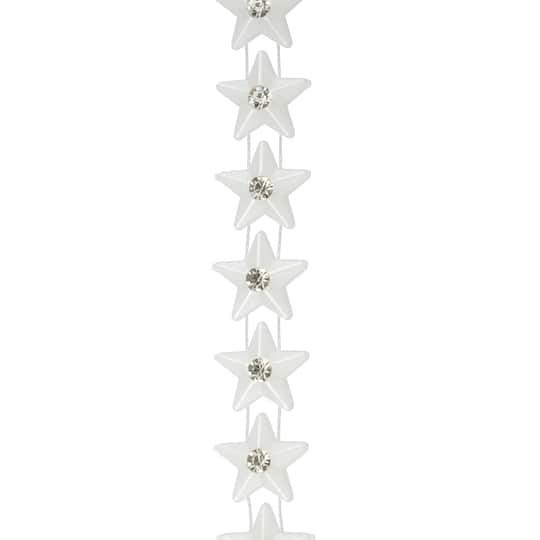15mm White Plastic & Glass Pearl Star Bead Garland, 5yd. By Bead Landing