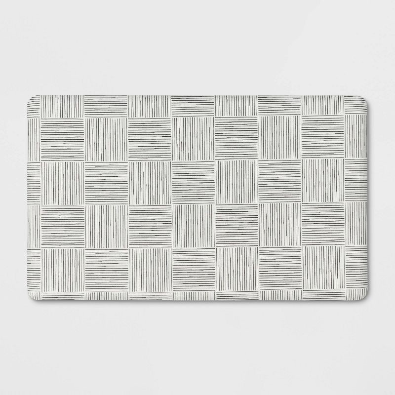 This Rareta Lines Comfort Mat from Threshold™ in a rectangular shape is great for use in any location where there is prolonged standing. It features a black abstract line pattern on a white base for m…