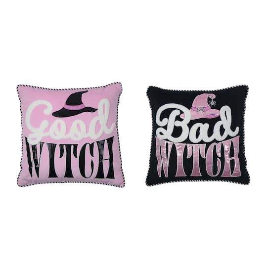Purchase the 16" Good Witch Bad Witch Double-Sided Throw Pillow by Ashland at Michaels. Bring a bit of spooky fun into your living room or den for the Halloween season with this throw double-sided pil…