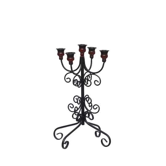 16.25" Black Scrollwork Metal Tabletop Candelabra By Ashland