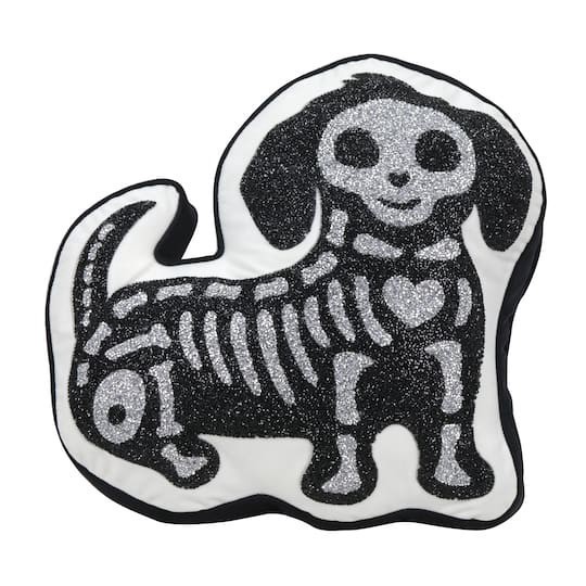Find the 16.5" Black & Silver Skeleton Dog Accent Pillow by Ashland at Michaels. Decorative pillows are a great and easy way to change up a room in seconds. Glittery black and silver. 16.5" x 15.5" (4…