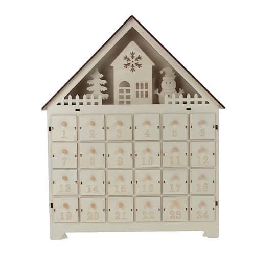 Purchase the 16.75" House Advent Calendar DIY LED Wood Decor by Make Market at Michaels. This house-shaped advent calendar features a light-up yellow LED light that glows through the open design at th…