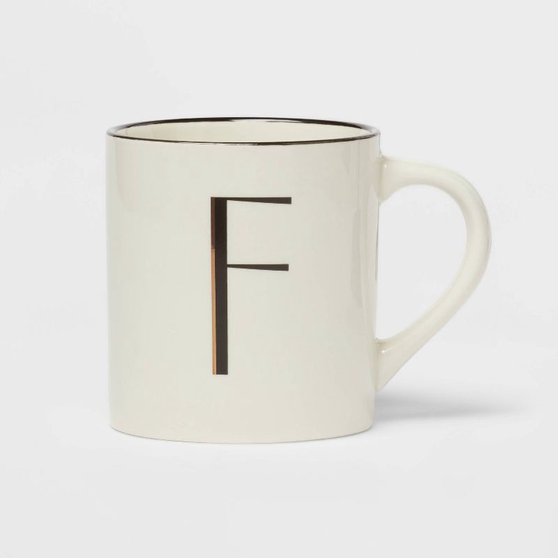 16oz Stoneware Monogram F Mug Ivory - Threshold™: Coffee Mugs with Initial, Microwave & Dishwasher Safe