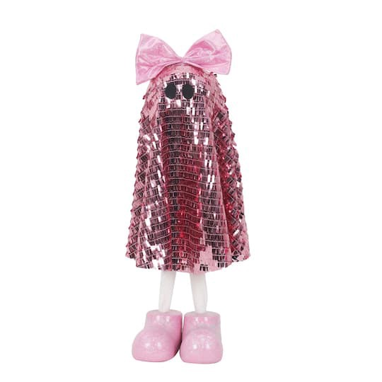 Find the 17" Standing Sequin Fabric Ghost with Bow Tabletop Decor by Ashland at Michaels. All done up with a floppy bow, this friendly spirit features a sequined fabric body with matching chunky sneak…
