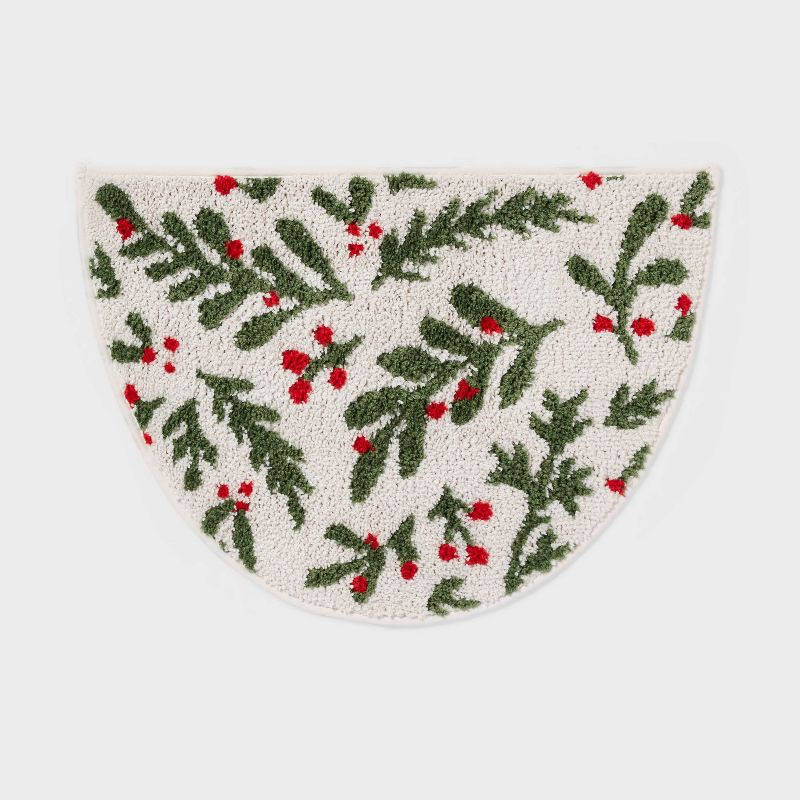 17"x24" Christmas Half Moon Botanical Bath Rug White - Wondershop™
