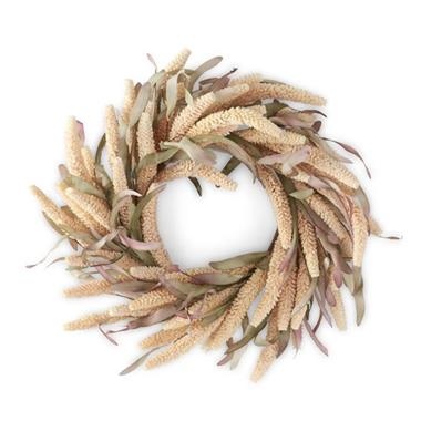 slide 1 of 1, 18” Cream Rice Wreath With Green & Burgundy Eva Leaves, 1 ct