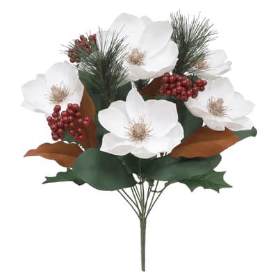 Buy the 18.5" White Magnolia, Pine & Berry Deluxe Bush by Ashland at Michaels. Add an enchanting vibe to your Christmas floral projects with this deluxe bush from Ashland that features magnolia blooms…