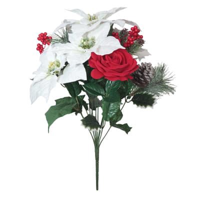 18.5" White Poinsettia & Red Rose Mix Deluxe Bush By Ashland