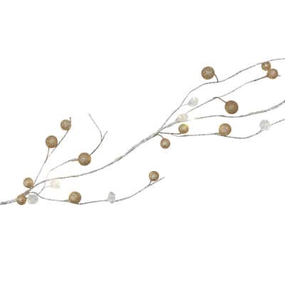 18ct. Warm White Led Gold Glitter & Crystal Bead Garland String Lights On Silver Wire By Ashland