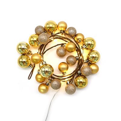 Find the 18ct. Warm White LED Gold Ornament Garland String Lights on Brown Wire by Ashland at Michaels. This garland of glitter and metallic gold ornaments with warm white LED bulbs feature a timer th…