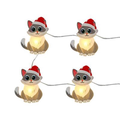 Find the 18ct. Warm White LED Gray Cat String Lights on Silver Wire by Ashland at Michaels. These warm white LED bulbs embellished with darling gray cats wearing Santa hats feature a timer that turns …