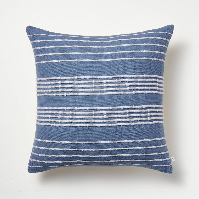 Hearth & Hand with Magnolia 18"x18" Textured Bead Stripe Square Throw Pillow Blue/Cream - Hearth & Hand™ with Magnolia