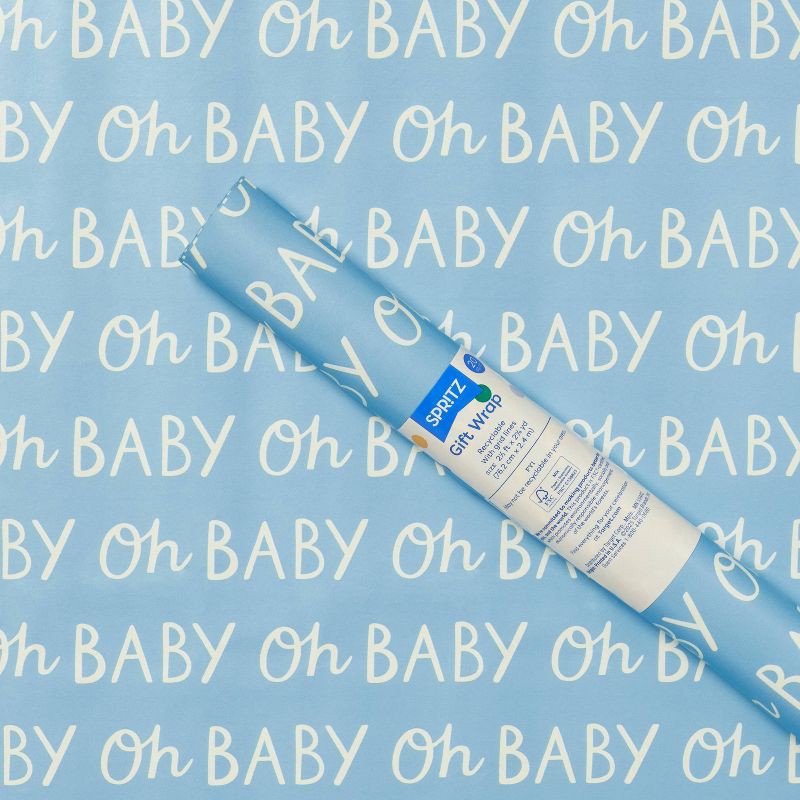 20 Sq Ft 'Oh Baby' Wrapping Paper Blue - Spritz™