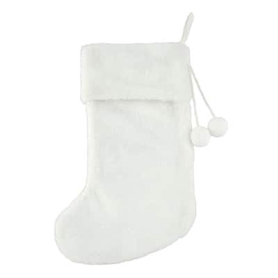 Purchase the 20" White Faux Fur Stocking with Pom Poms by Ashland at Michaels.. 8" x 20" (20.3cm x 50.8cm). Polyester. For indoor decor use only. Spot clean only