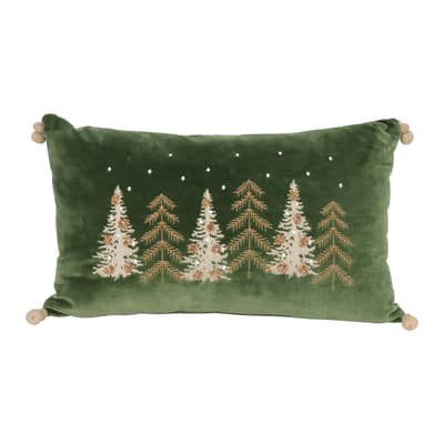 Find the 20" x 12" Green Embroidered Trees Lumbar Throw Pillow by Ashland at Michaels. Bring the cozy magic of a gingerbread forest to your holiday decorating with this charming lumbar throw pillow fr…