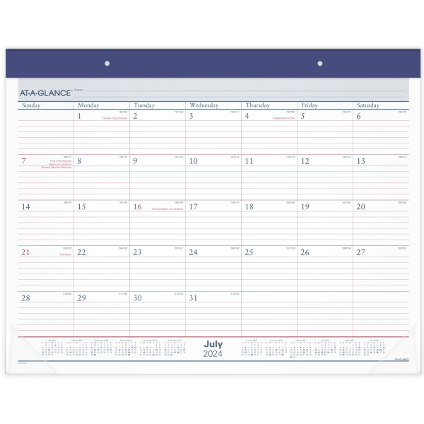 2024-2025 At-A-Glance Academic Standard Monthly Desk Pad Calendar, 21-3/4"" X 17"", Blue/Red, July To June