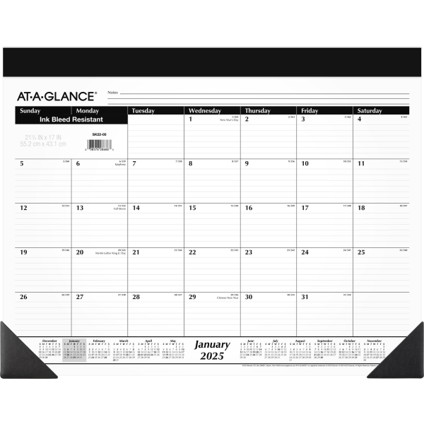 2025 At-A-Glance Monthly Desk Pad Calendar, 21-3/4"" X 17"", Traditional, January 2025 To December 2025, Sk220025