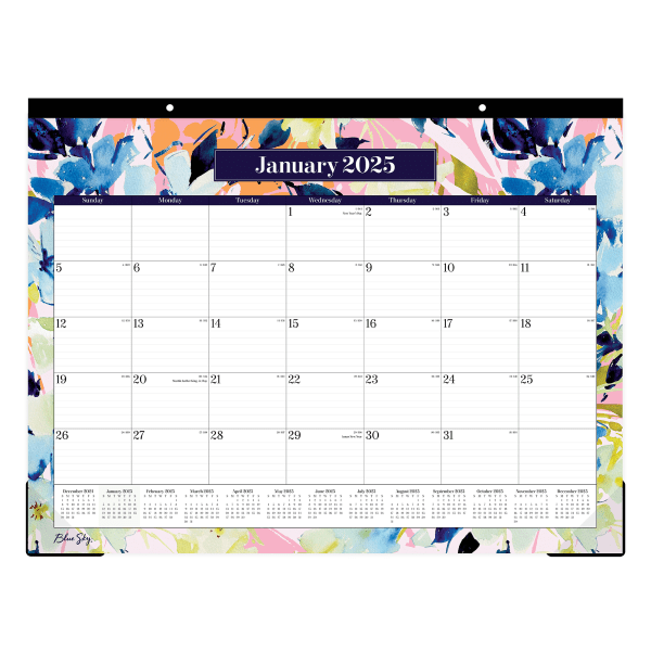 Stay organized and on top of your game in the office with a 2025 Blue Sky Monthly Desk Pad Calendar. Protective corner covers help to prevent page curling when you write. Features 1 month per page wit…