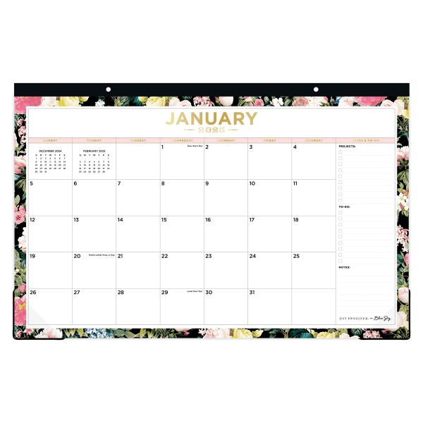 Add style to your desk space with a 2025 Day Designer Monthly Desk Pad Calendar. It features corner covers and perforated pages that can easily be discarded or displayed. Features 1 month per page wit…