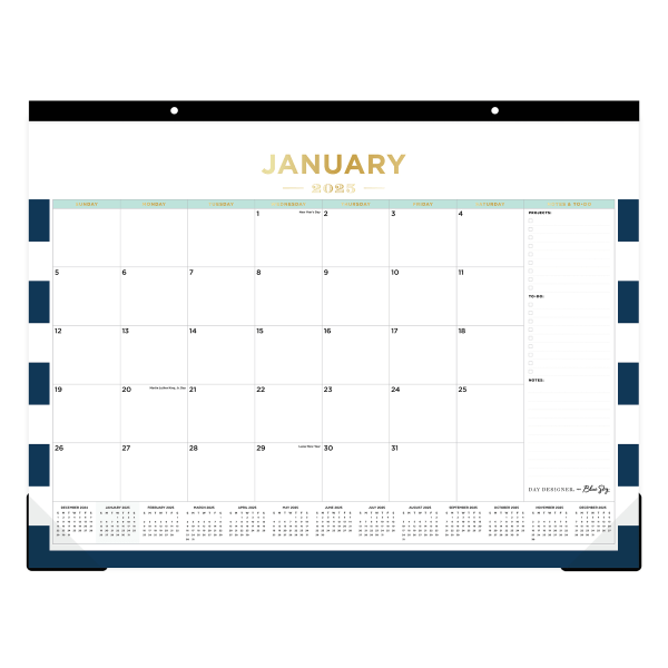 2025 Day Designer Monthly Desk Pad Calendar, 22"" X 17"", Rugby Stripe Navy, January To December, 148793