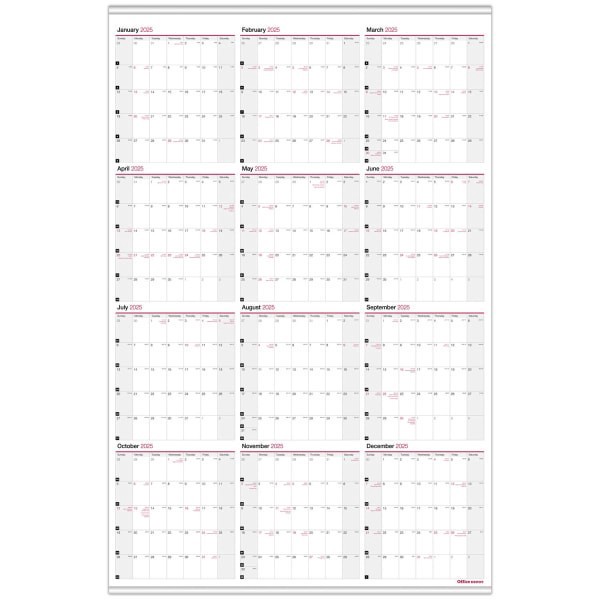2025 Office Depot Brand Yearly Wall Calendar, 24"" X 36"", Traditional, January 2025 To December 2025, Od301428