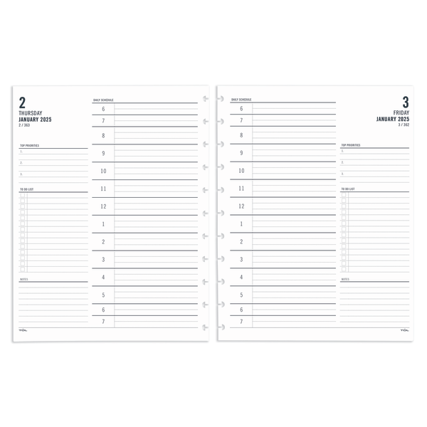 2025 Tul Discbound Daily Planner Refill Pages, Letter Size, January To December