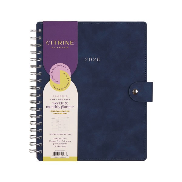 2026 Citrine Monthly/Weekly Classic Customizable Twin Loop Planner, 7"" x 9-1/4"", Navy Blue, January To December, PZ0030C004