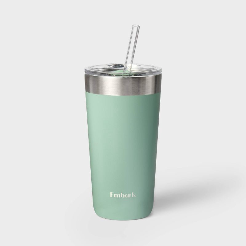20oz Stainless Steel Tumbler with Straw Green - Embark™: BPA-Free, Portable Drinkware