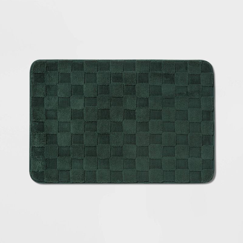 This Everyday Checked Cushion Bath Rug from Room Essentials™ gives your bath decor a spa-like touch. This dark green bathmat is crafted from microfiber fabric with a checked cushion texture to provide…