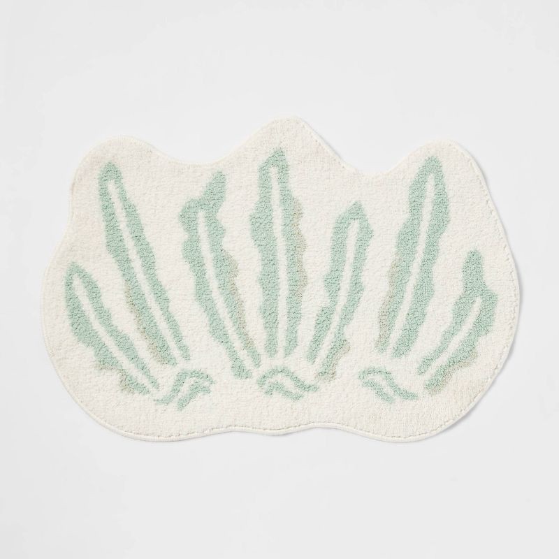 Infuse your bathroom decor with the coastal charm of this Seaweeds Coastal Non-Skid Bath Rug from Threshold™. The midweight bath rug is designed in a novelty sculptural shape with a knitted cream surf…