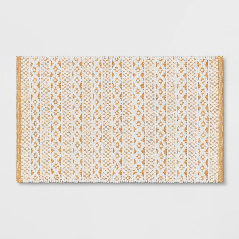 Bring spa-like comfort to your bath space with this Chenille Bath Rug from Threshold™. This rectangular bath rug is woven from soft cotton to lend your feet a soft and warm feel, while the stripe patt…