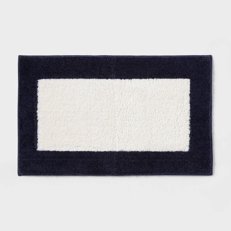 20"x34" Fluffy Border Memory Foam Bath Rug Navy - Threshold™