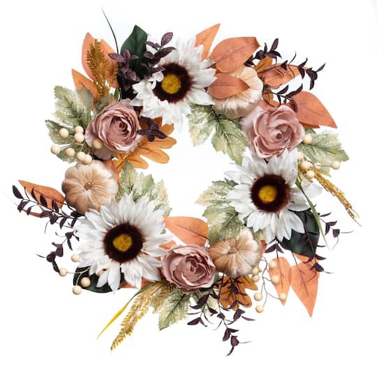 Purchase the 22" Sunflower, Pumpkin & Rose Wreath by Ashland at Michaels. Bring in fall with this decorative wreath from Ashland. Featuring a mix of sunflowers, roses, and pumpkins, this seasonal wrea…