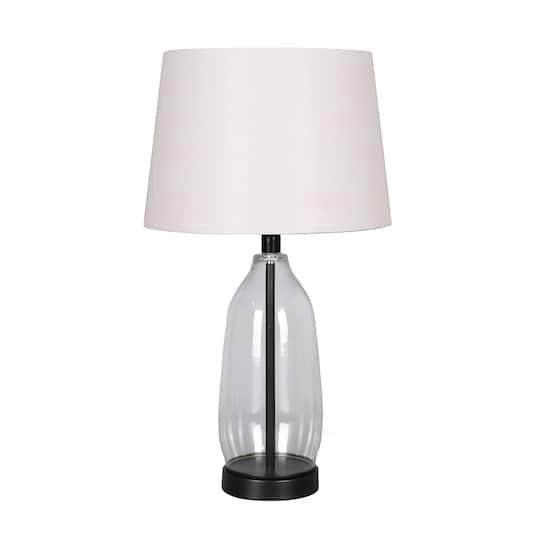 Find the 23" Clear & Black Slim Glass & Metal Table Lamp with Natural Fabric Shade by Ashland at Michaels. With a slim clear rounded base accented by black and finished with a classic fabric shade, th…