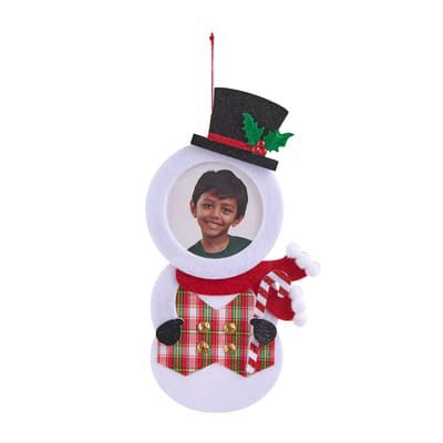 Buy the 2.5" Snowman Holding Candy Cane Felt Ornament Frame by Studio Decor at Michaels. Featuring a snowman wearing a plaid vest and holding a candy cane, add a photo of your little one or pet and ha…