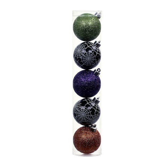 Buy the 2.5" Spiderweb Ornament Set by Ashland at Michaels. This ornament set features a purple glitter ornament, a green glitter ornament, an orange glitter ornament and a black and white spiderweb d…