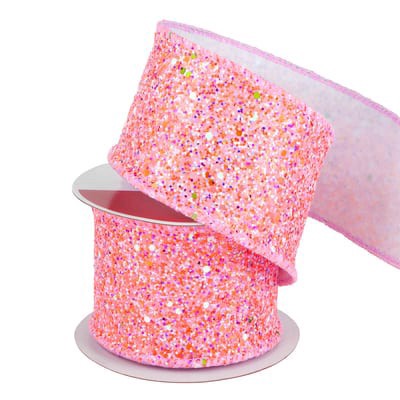 Shop for this 2.5" x 12ft. Pink Mix Wired Glitter Ribbon by Celebrate It at Michaels. The sparkly Christmas ribbon has a chunky pink glitter finish, and the wired edges are perfect for adding structur…