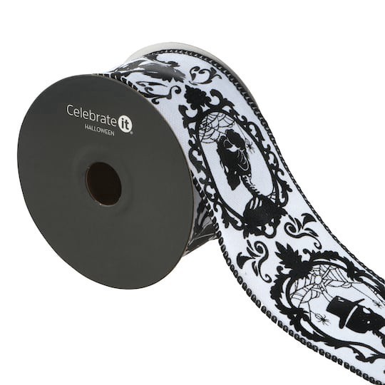 2.5" X 20ft. Black & White Wired Skeleton Portrait Ribbon By Celebrate It Halloween