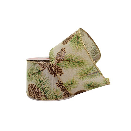 Purchase this 2.5" x 20ft. Pinecone Faux Linen Wired Ribbon by Celebrate It at Michaels. This pretty ribbon has a rustic pinecone print, and with a gold wired edge, it will add structure and shape to …