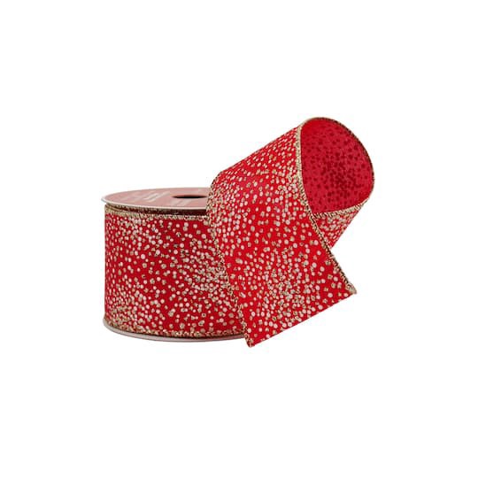 Find this 2.5" x 20ft. Red & Gold Glitter Dots Wired Ribbon by Celebrate It at Michaels. The Christmas ribbon has a glittery gold dot pattern on a red base, and with a metallic gold wired edge, it wil…