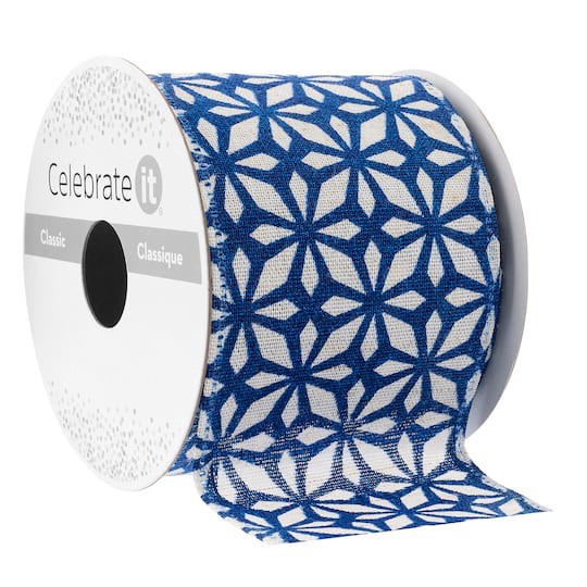 2.5" X 3yd. Blue Geometric Chinoiserie Wired Edge Ribbon By Celebrate It