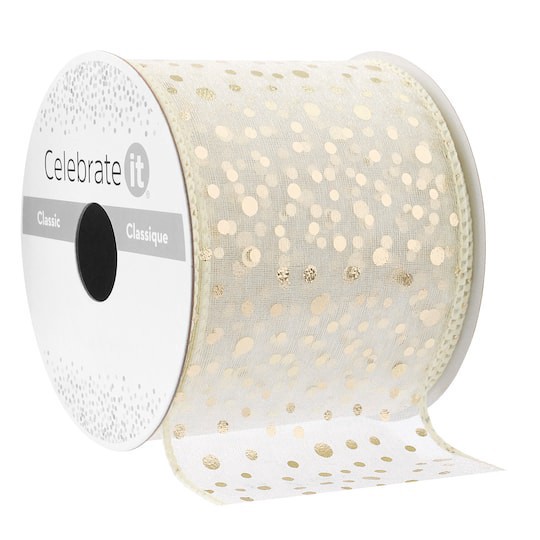 Buy the 2.5" x 3yd. Sheer Wired Gold Dotted Ribbon by Celebrate It Classic at Michaels. Give your gifts or crafts a fun touch of charm with this polka dot ribbon by Celebrate It. Gold colored. 2.5" x …
