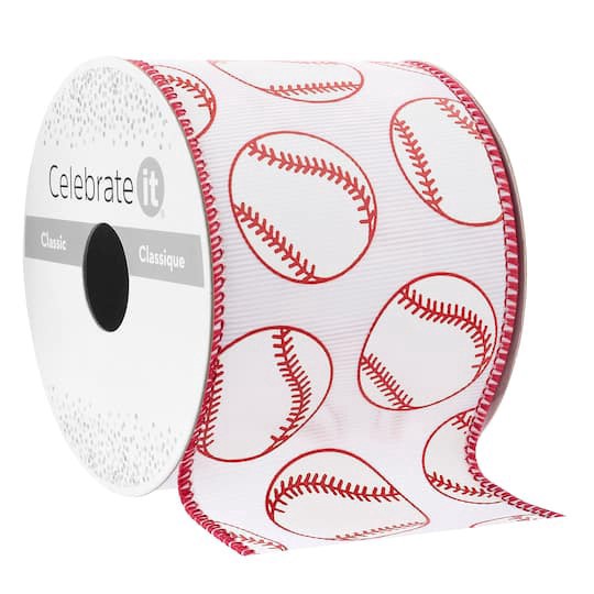 Buy the 2.5" x 3yd. Wired Baseball Ribbon by Celebrate It Classic at Michaels. Give your gifts or crafts a fun touch of charm with this baseball print ribbon by Celebrate It. White and red. 2.5" x 3yd…