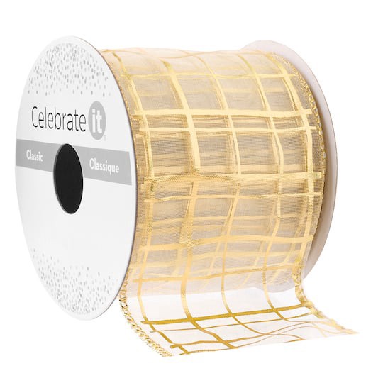 Buy the 2.5" x 3yd. Wired Gold Grid Ribbon by Celebrate It Classic at Michaels. Give your gifts or crafts a fun touch of charm with this ribbon by Celebrate It. Gold colored. 2.5" x 3yd. (6.35cm x 2.7…