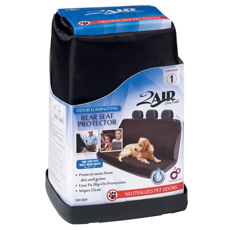 The 2Air Odor Eliminating Black Rear Bench Seat Protector keeps your vehicle looking and smelling great. The bench seat protector is 47 inches by 55 inches to provide one size fitment for most rear se…
